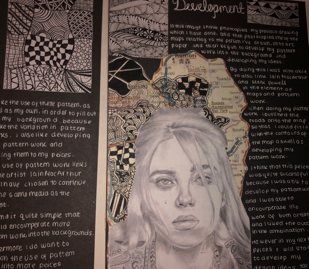 For Art you have to choose a theme to do and I decided to do Maps for my A4 sketchbook but did ‘cars’ for my A3 one. I found these themes quite enjoyable to do and drawing itself can be very therapeutic. The only struggle I had was time management and balancing my other subjects as well as doing my best drawings. I often found myself staying after school in art club to get things do and ask my teachers for help.